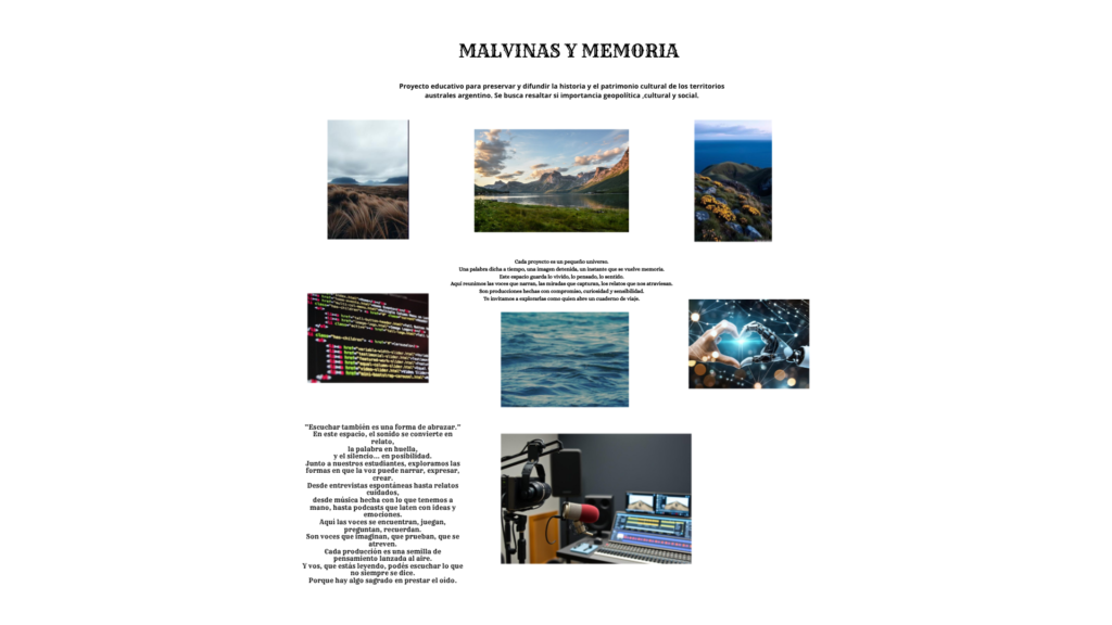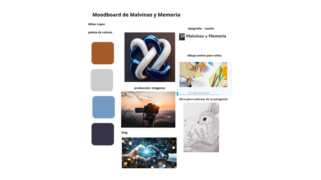 Como parte del recorrido educativo y creativo del proyecto Malvinas y Memoria, los estudiantes realizaron un ejercicio visual: la creación de un moodboard inspirado en el sitio web del proyecto.